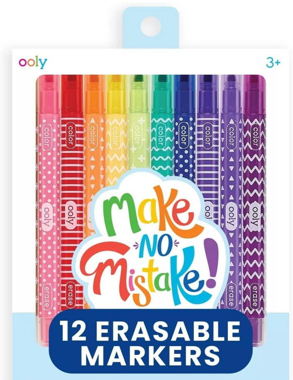 Ooly Make No Mistake Erasable Markers, Stress and Mess Free Marker Pack You Can Erase, Drawing & Coloring Pens for Kids and Adults, Colorful School Supplies for Any Arts & Crafts, Set of 12