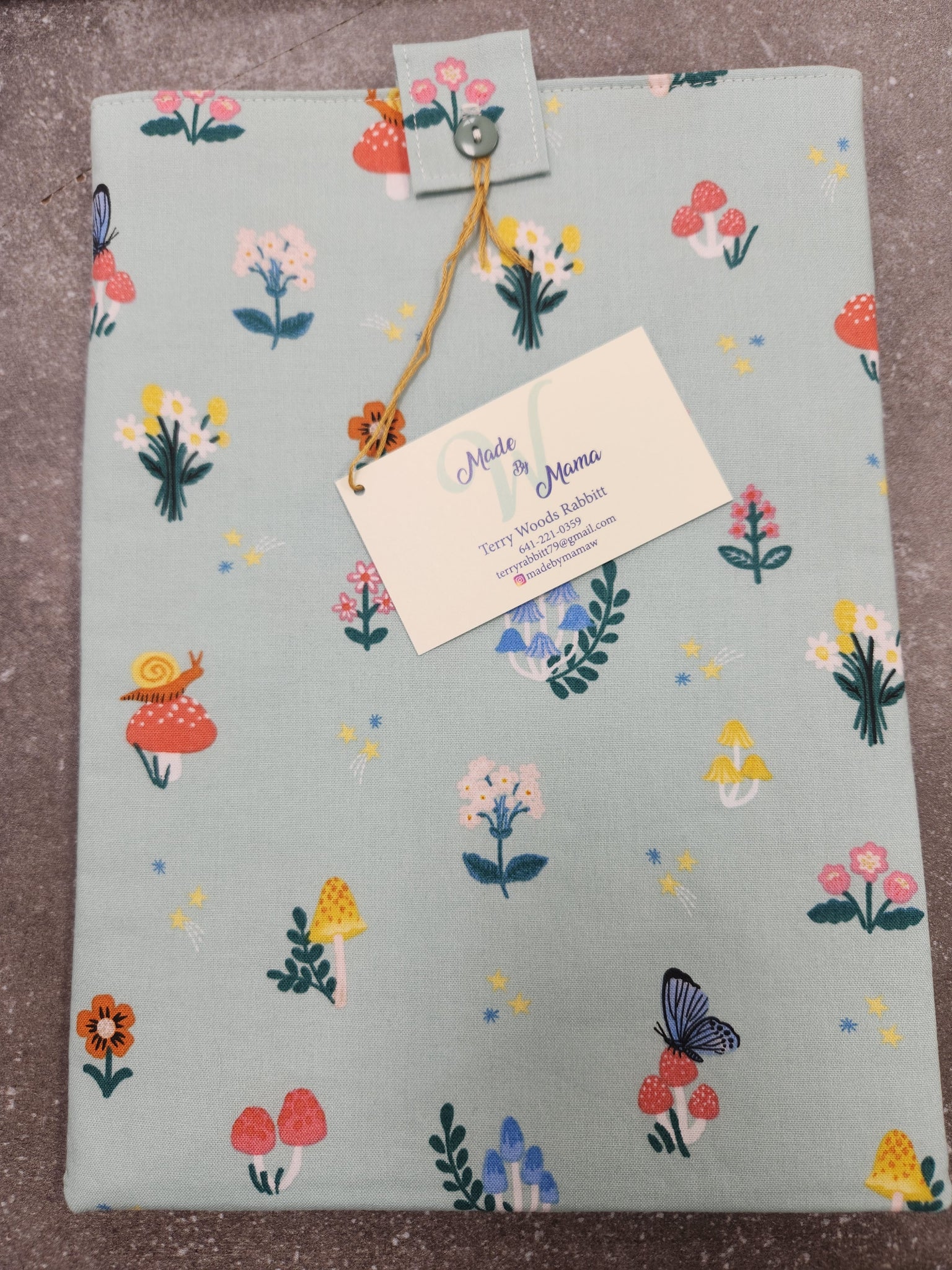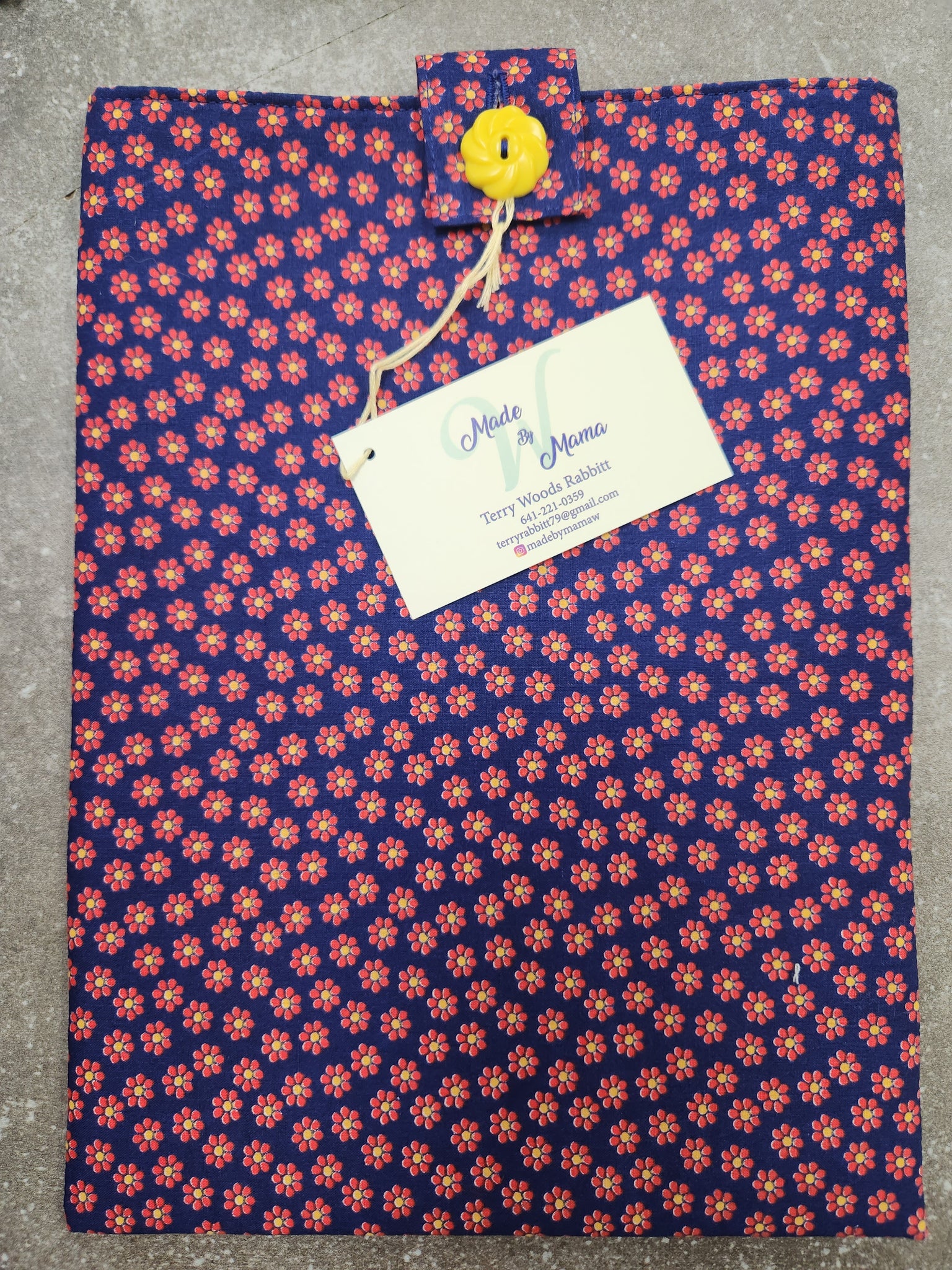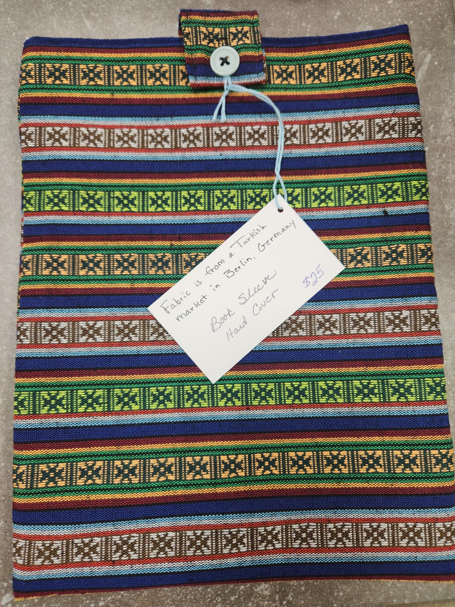 Book sleeves for ultimate book protection while on the move. Slip your Hardcover book or kindle into the fabric pouch, button it up, and throw it into your bag or purse. The sleeve protects your device or book from scratching and bending.