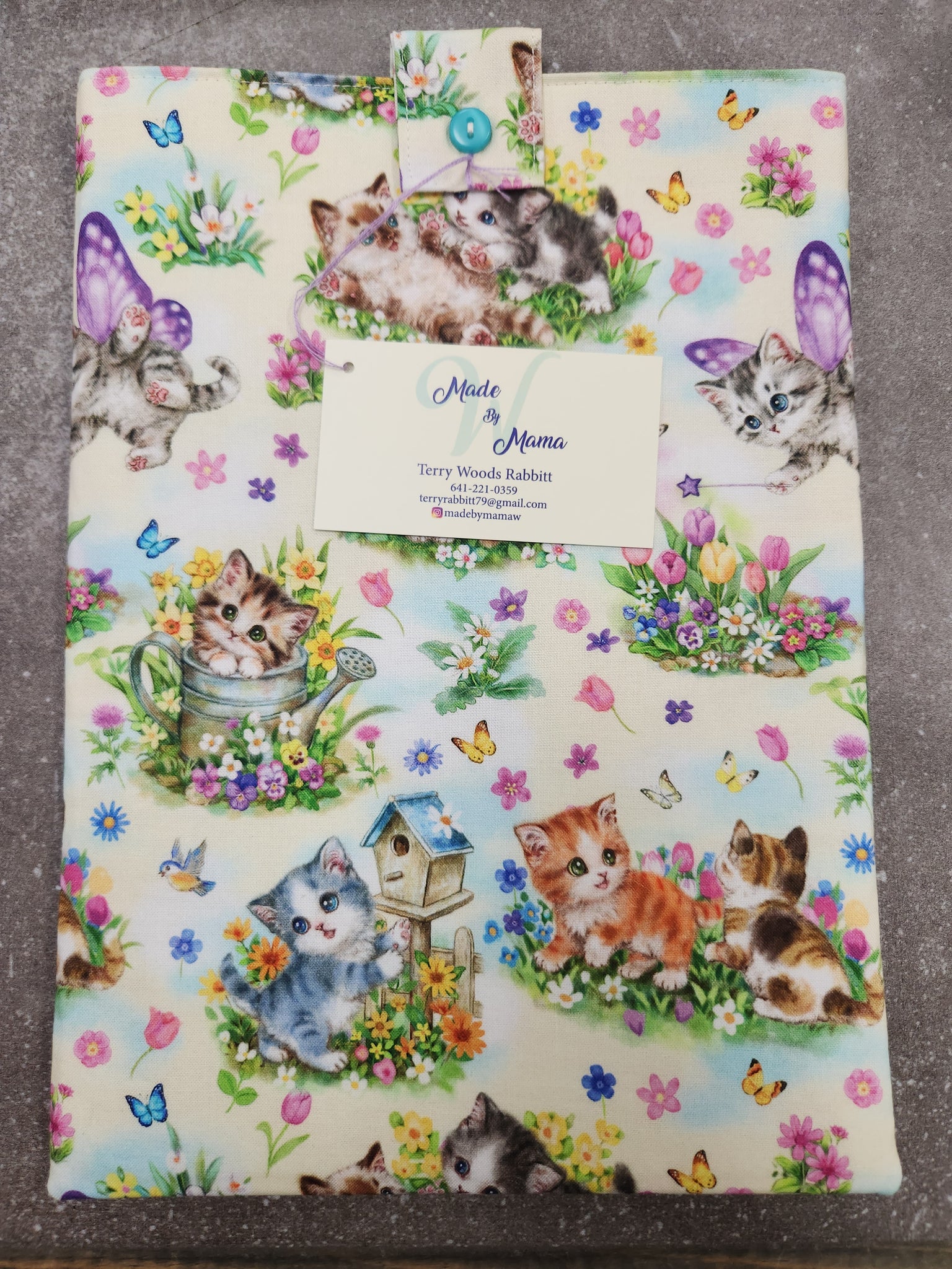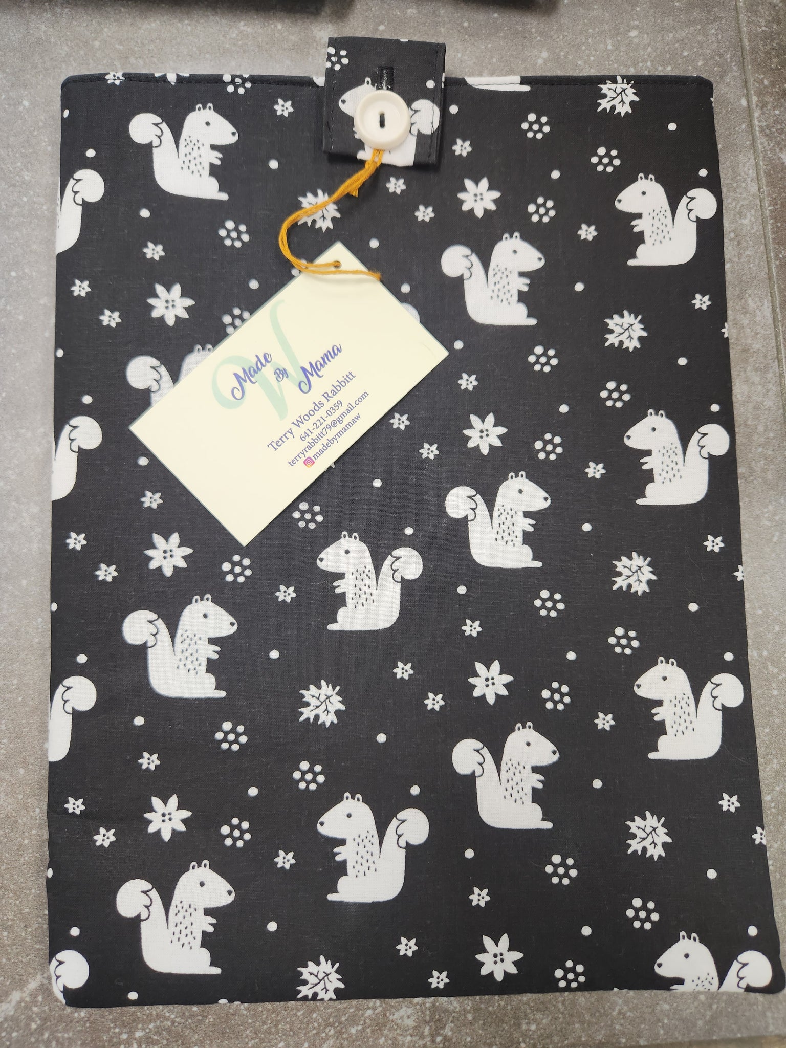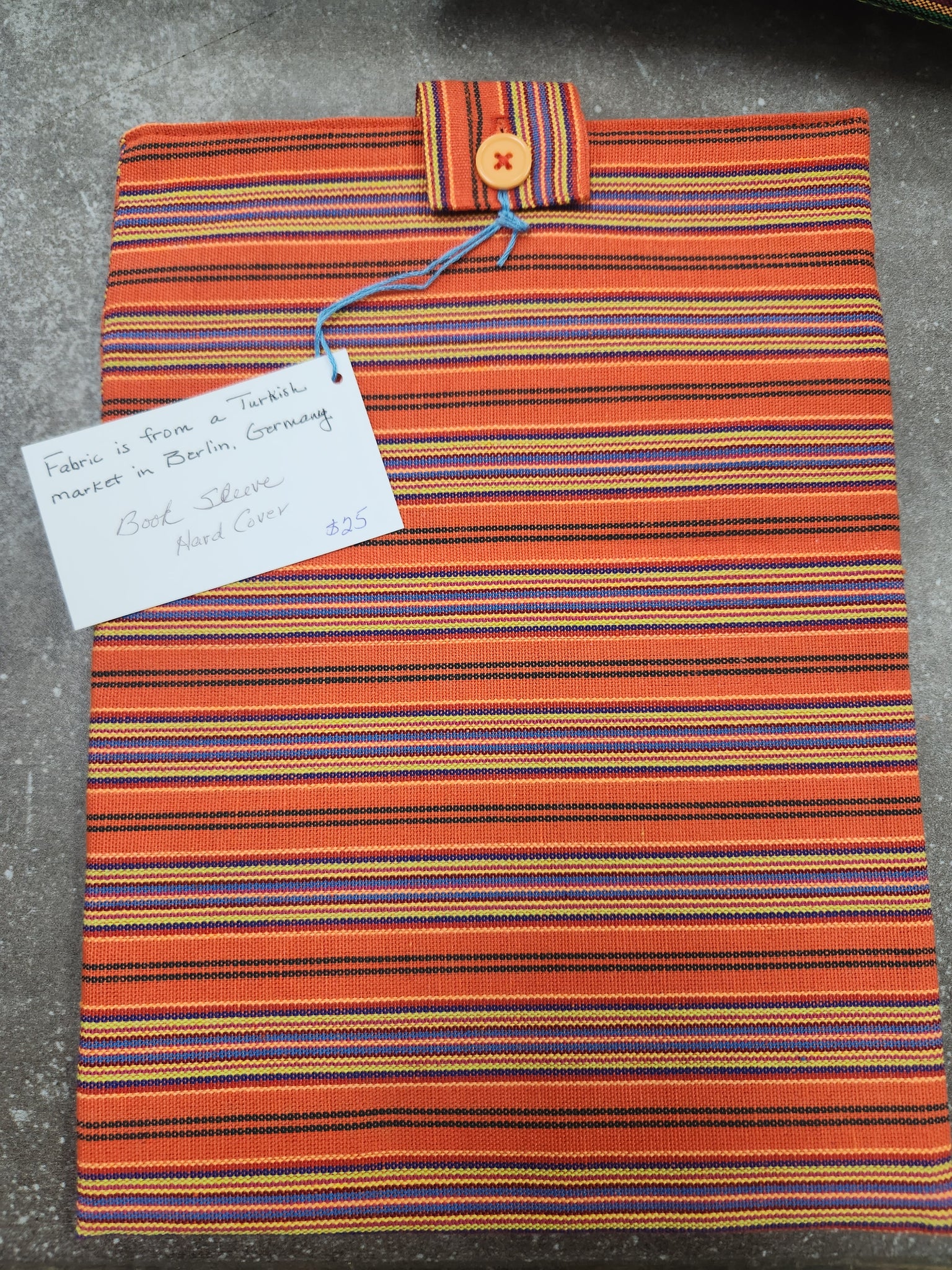 Book sleeves for ultimate book protection while on the move. Slip your Hardcover book or kindle into the fabric pouch, button it up, and throw it into your bag or purse. The sleeve protects your device or book from scratching and bending.