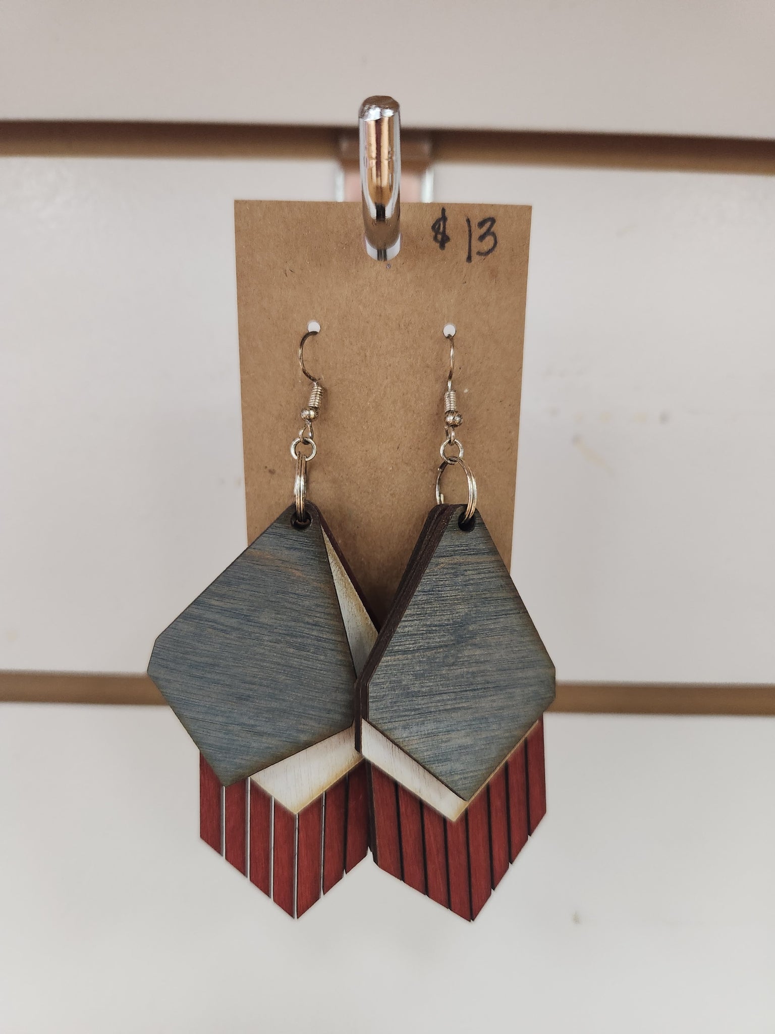 All earrings made by Carroll, Iowa local vendor: Iowa Custom Woodworks