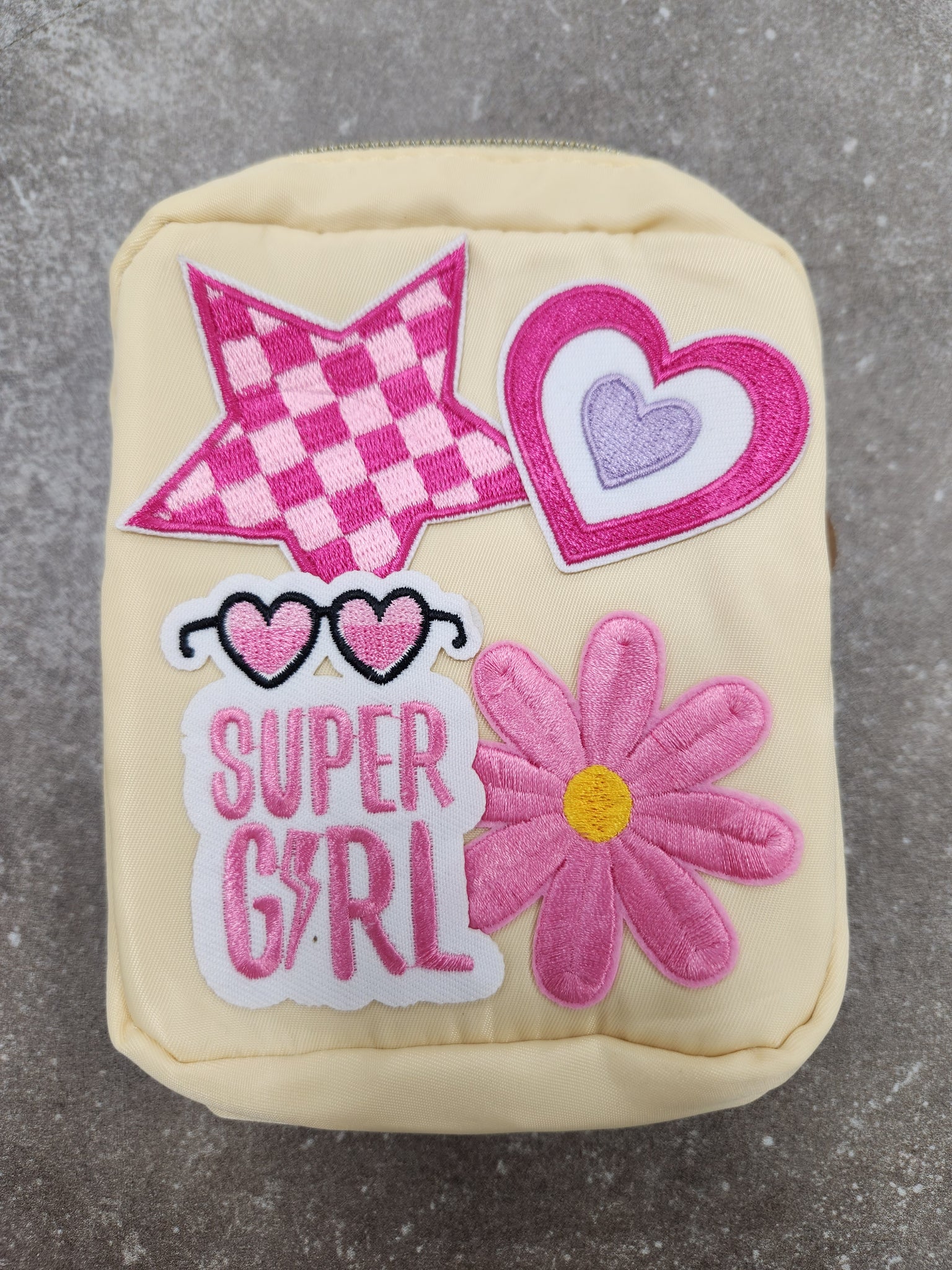 6" patch bags with a zipper pocket